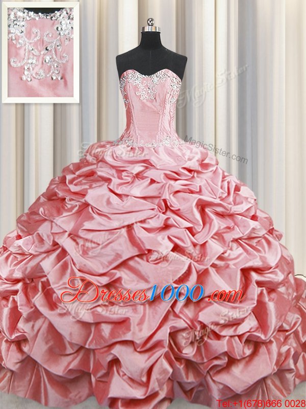 Pick Ups Baby Pink Sleeveless Taffeta Brush Train Lace Up Sweet 16 Dresses for Military Ball and Sweet 16 and Quinceanera