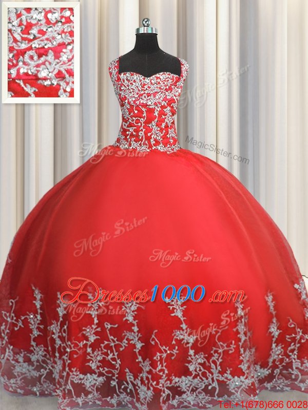 Sleeveless Beading and Appliques Lace Up Quince Ball Gowns