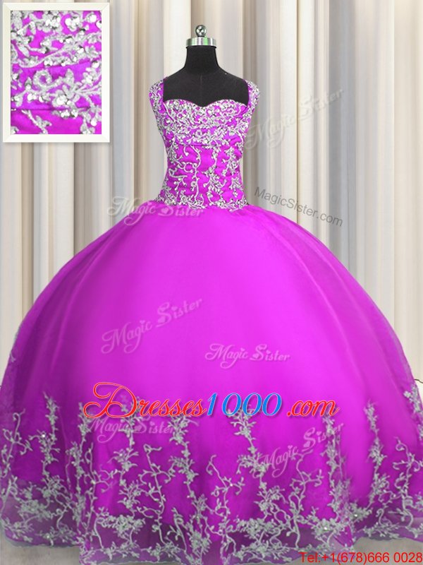 Fabulous Purple Straps Neckline Beading and Appliques Quince Ball Gowns Sleeveless Lace Up