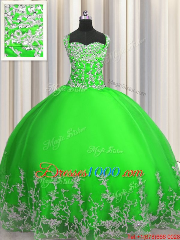 Green Lace Up Quinceanera Gowns Beading and Appliques Sleeveless Floor Length