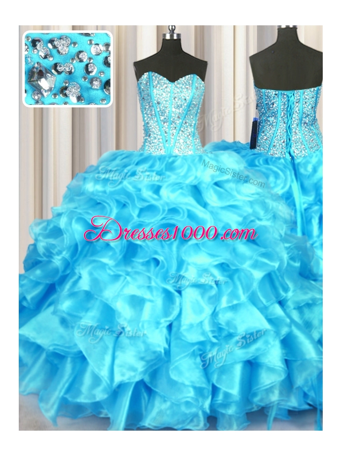 Enchanting Aqua Blue Sweet 16 Quinceanera Dress Military Ball and Sweet 16 and Quinceanera and For with Beading and Ruffles Sweetheart Sleeveless Lace Up