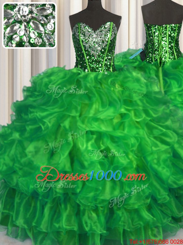 Sweetheart Sleeveless Organza Vestidos de Quinceanera Beading and Ruffles Lace Up