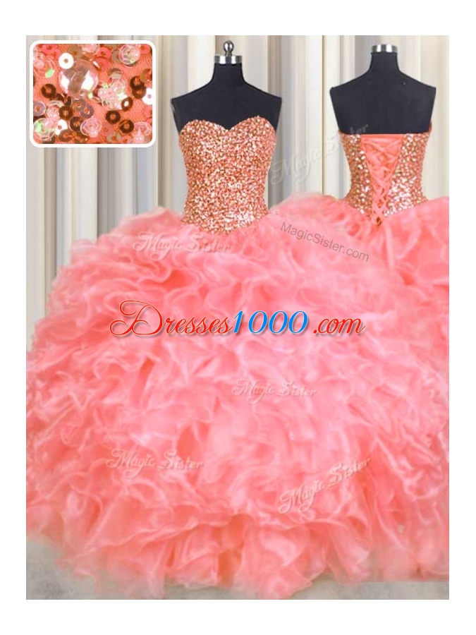Halter Top Organza Sleeveless Floor Length Sweet 16 Dress and Beading and Ruffles