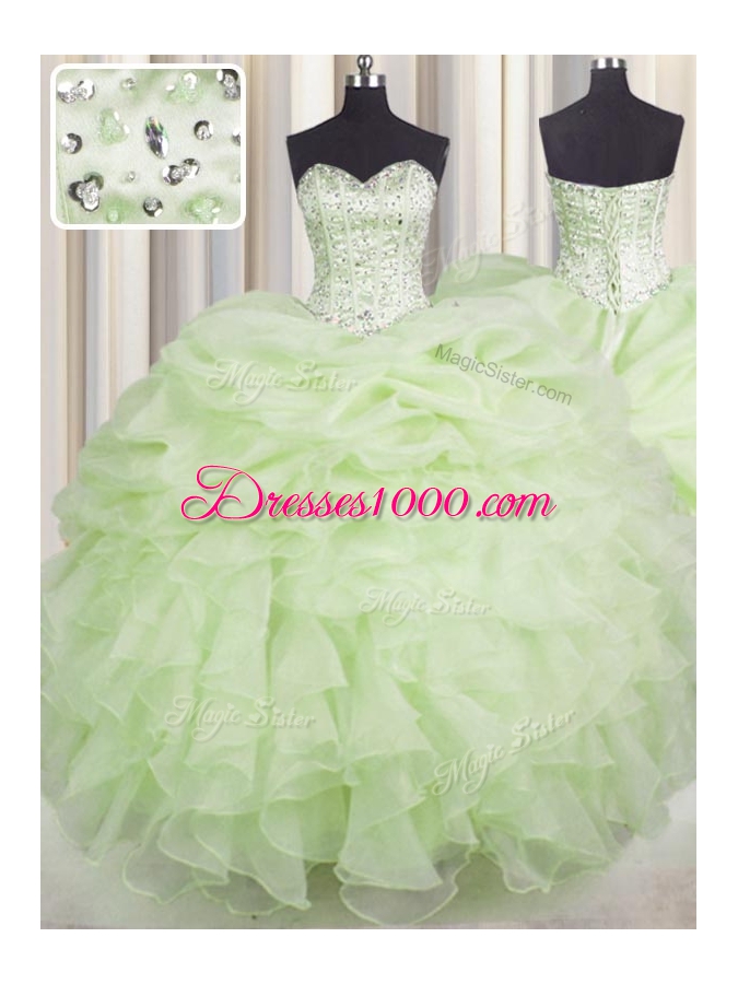 Beading and Ruffles Ball Gown Prom Dress Yellow Green Lace Up Sleeveless Floor Length