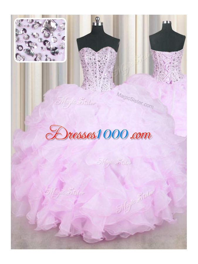 Graceful Mermaid Lilac Lace Up 15th Birthday Dress Beading and Ruffles Sleeveless Floor Length