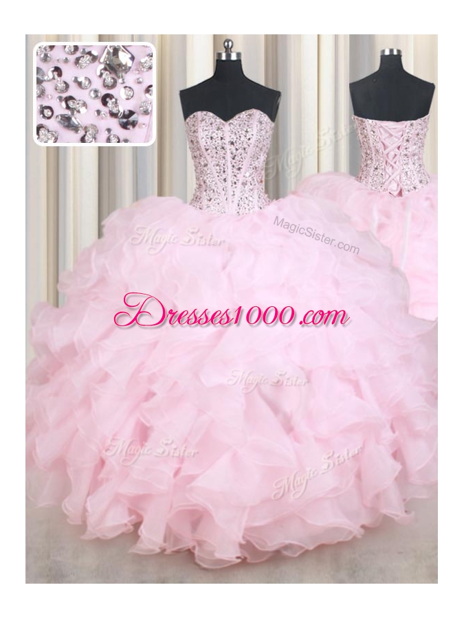 Charming Baby Pink Sleeveless Organza Lace Up 15th Birthday Dress for Military Ball and Sweet 16 and Quinceanera