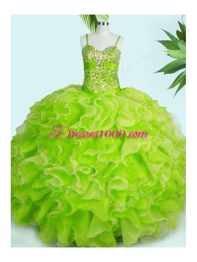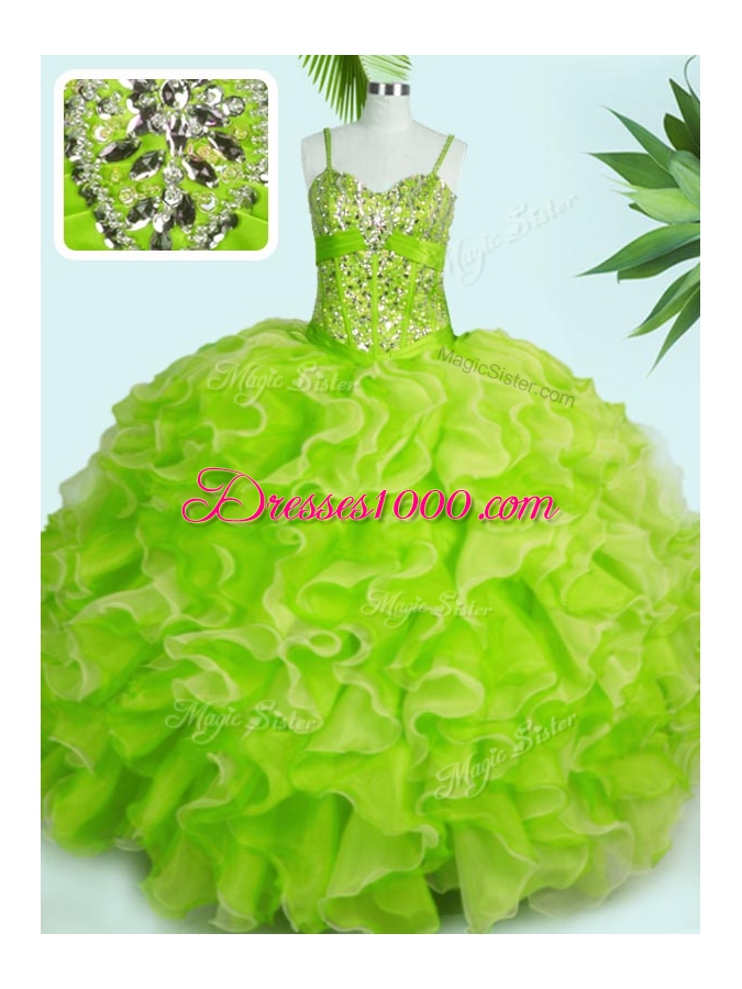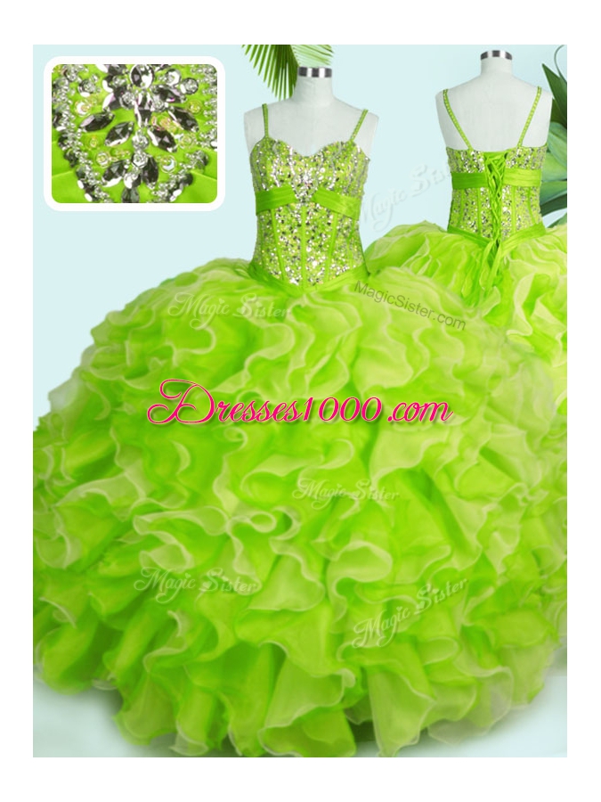 Yellow Green Lace Up Spaghetti Straps Beading and Ruffles Quinceanera Dresses Organza Sleeveless