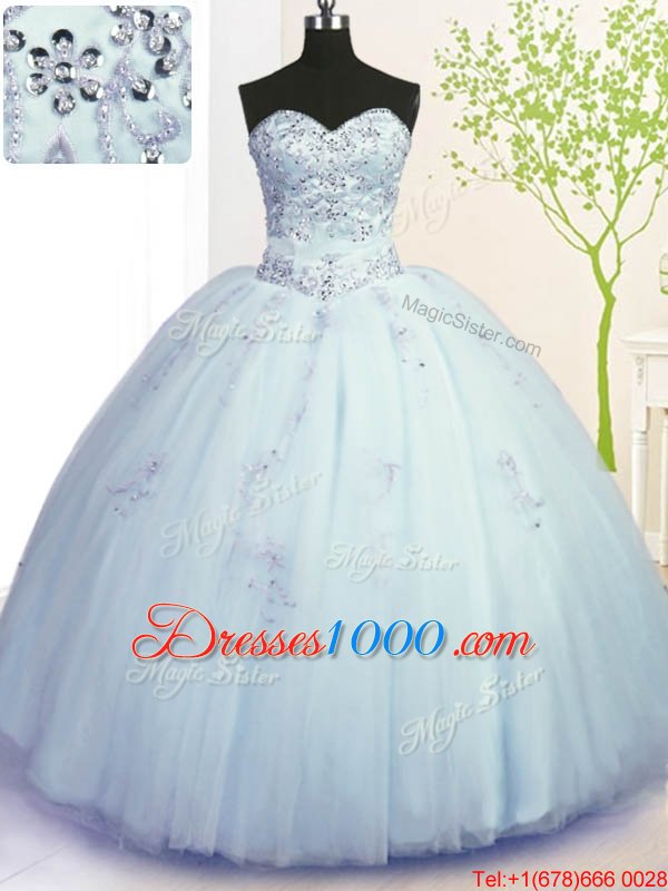 Pretty Light Blue Tulle Lace Up Quinceanera Dress Sleeveless Floor Length Beading and Appliques