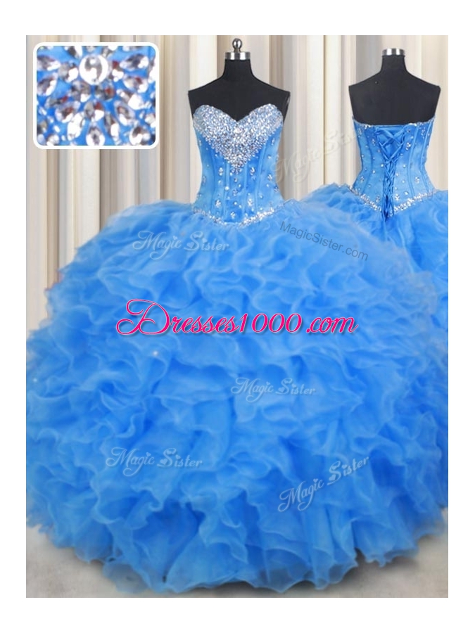 Best Baby Blue Sweetheart Lace Up Beading and Ruffles 15 Quinceanera Dress Sleeveless