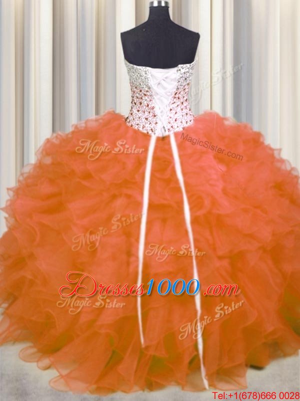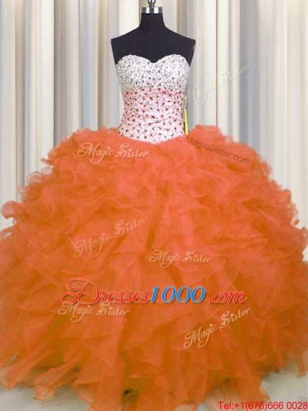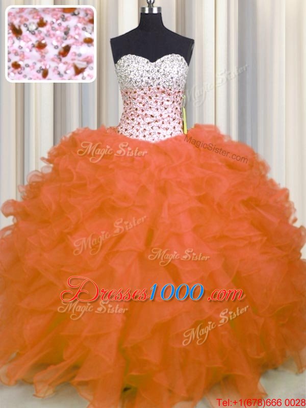 Smart Ball Gowns Sweet 16 Dresses Orange Red Sweetheart Organza Sleeveless Floor Length Lace Up