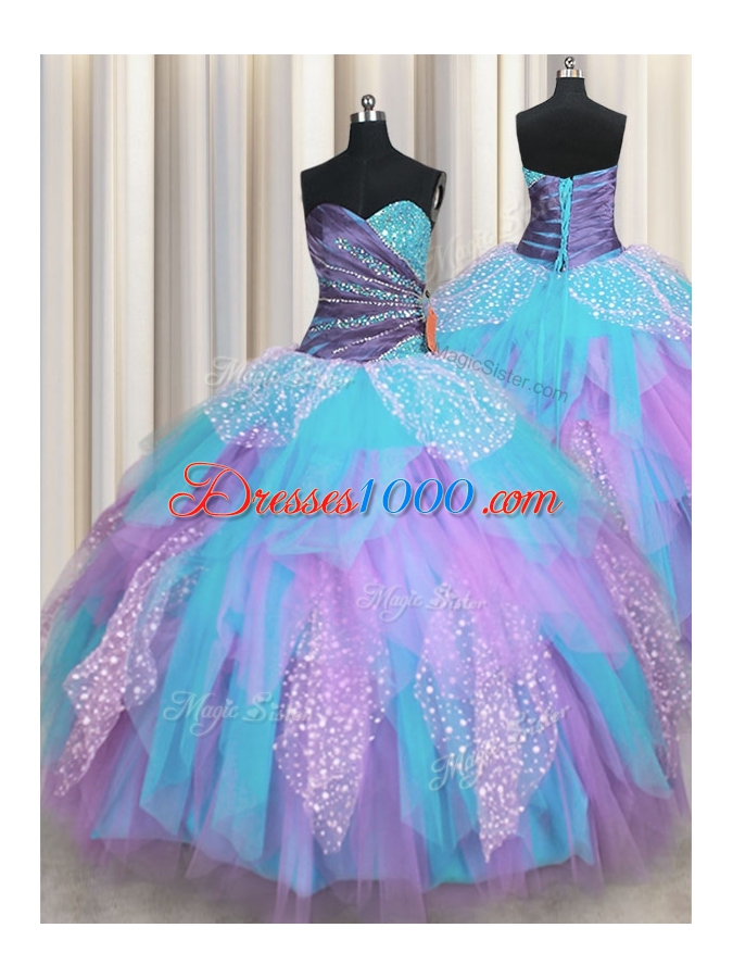 Lovely Sweetheart Sleeveless Lace Up 15th Birthday Dress Multi-color Tulle