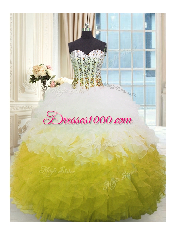 Multi-color Quinceanera Gowns Military Ball and Sweet 16 and Quinceanera and For with Beading and Ruffles Sweetheart Sleeveless Lace Up