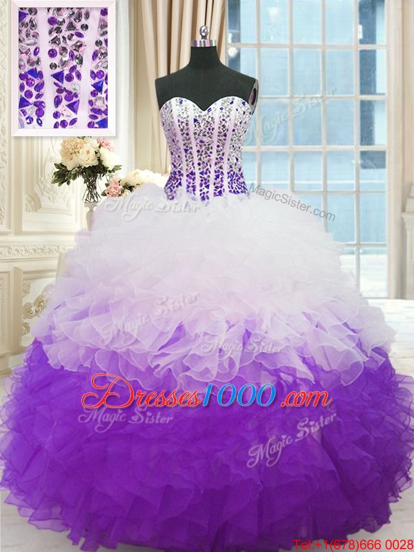 Pretty White And Purple Lace Up Sweetheart Beading and Ruffles Sweet 16 Dresses Organza Sleeveless
