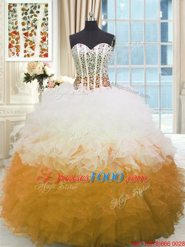 Glamorous Sleeveless Lace Up Floor Length Beading and Ruffles Sweet 16 Dress