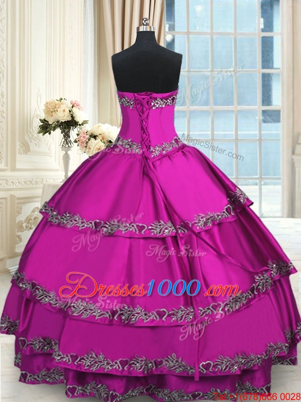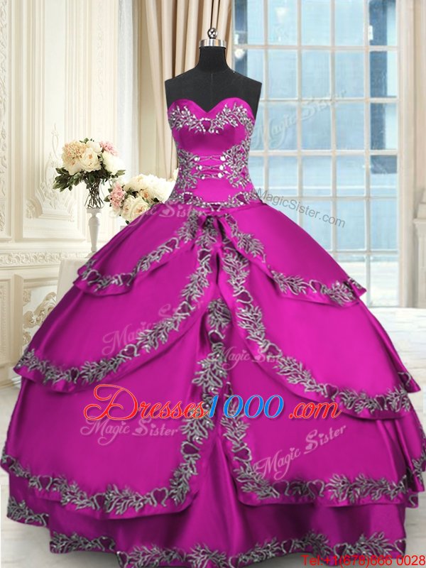 Fuchsia Taffeta Lace Up Sweetheart Sleeveless Floor Length 15th Birthday Dress Beading and Embroidery