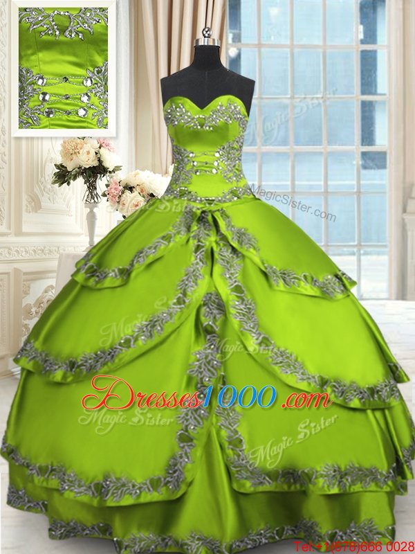 Glamorous Taffeta Lace Up Sweetheart Sleeveless Floor Length Vestidos de Quinceanera Beading and Embroidery and Ruffled Layers
