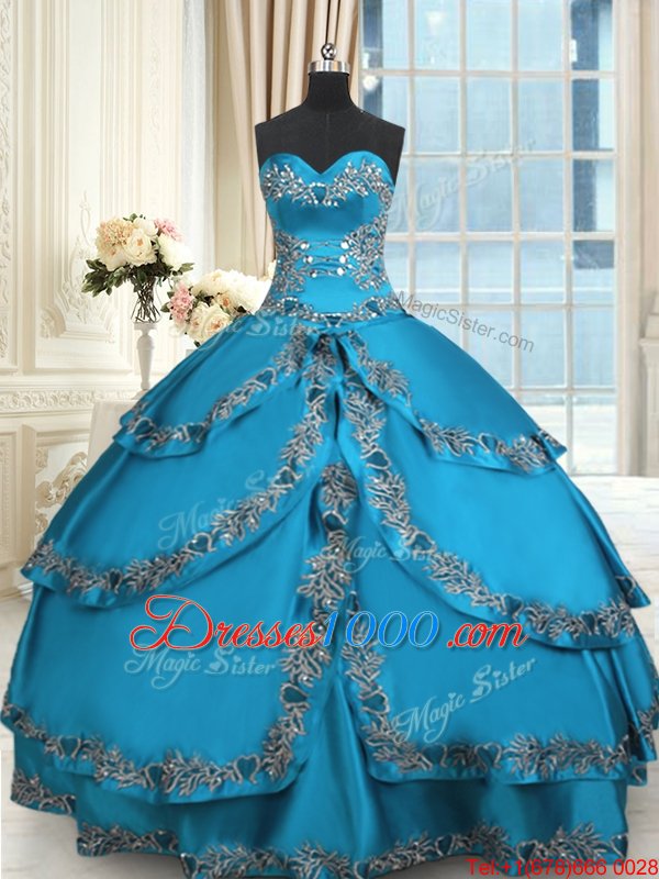 Deluxe Sweetheart Sleeveless Taffeta Sweet 16 Quinceanera Dress Beading and Embroidery and Ruffled Layers Lace Up