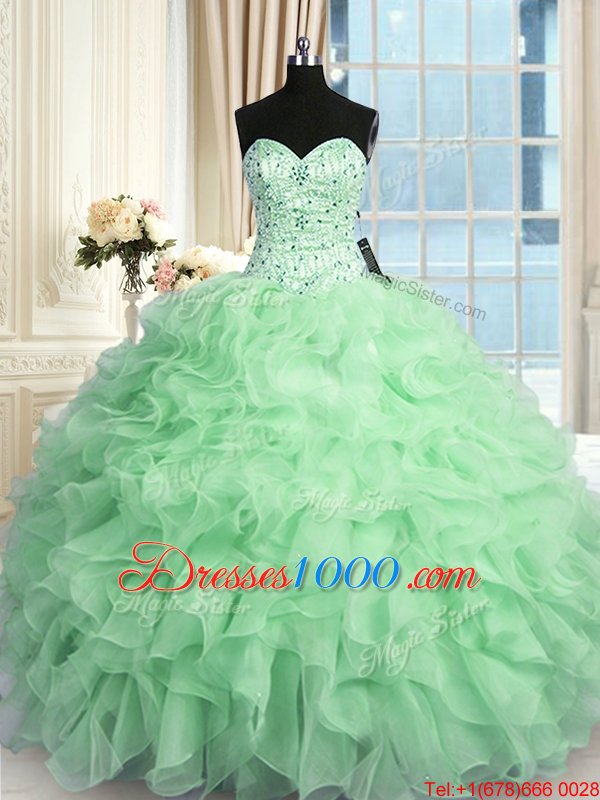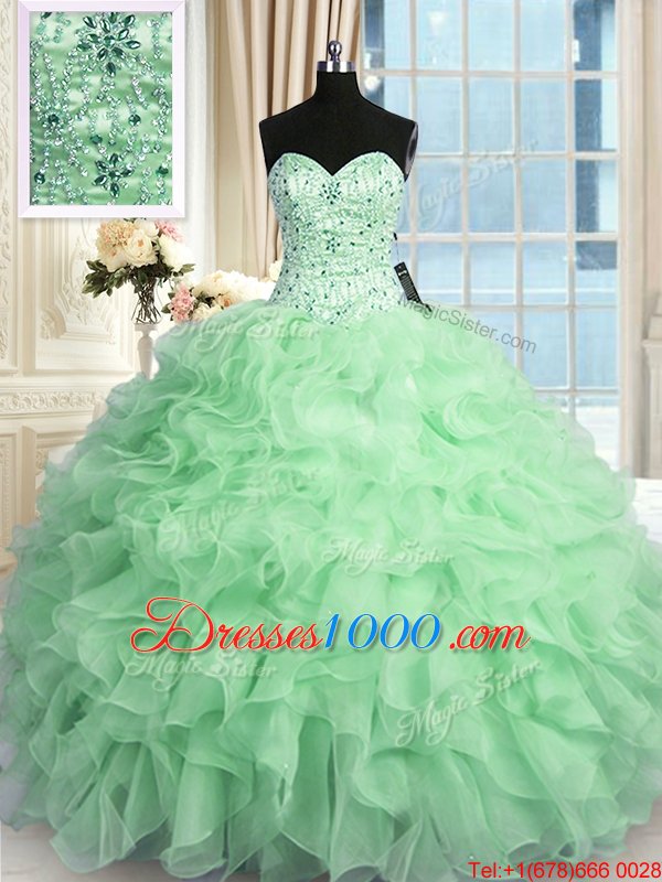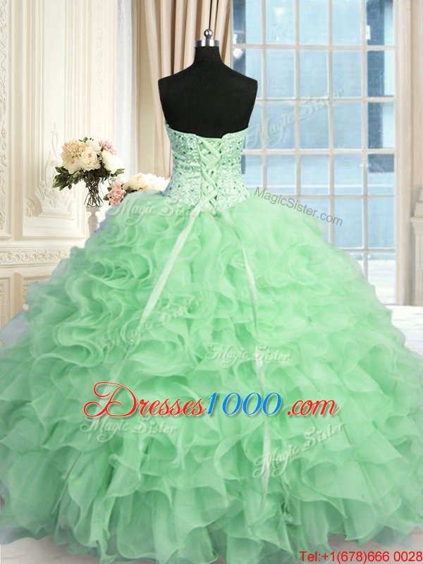 Exceptional Apple Green Sweet 16 Dresses Military Ball and Sweet 16 and Quinceanera and For with Beading and Ruffles Sweetheart Sleeveless Lace Up