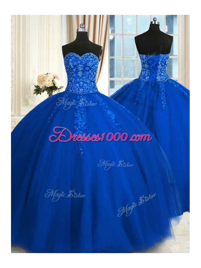 Blue Sleeveless Appliques and Embroidery Floor Length Sweet 16 Dress
