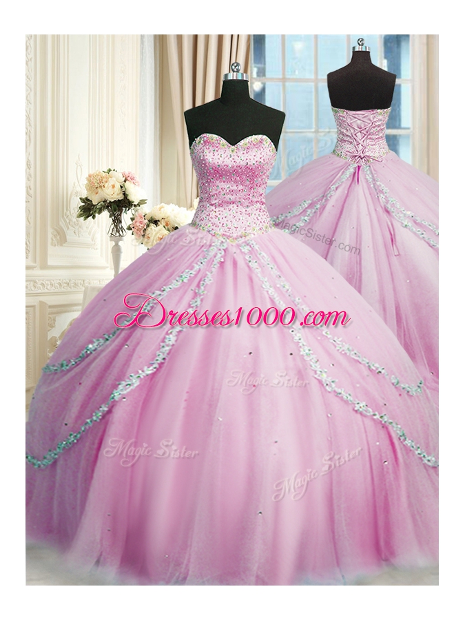 Lilac Sweetheart Lace Up Beading and Appliques Sweet 16 Quinceanera Dress Court Train Sleeveless