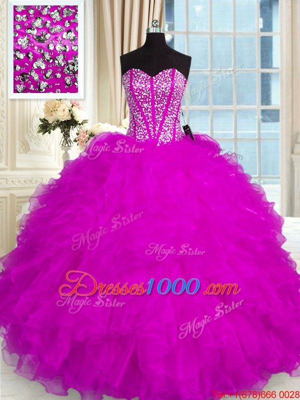 Organza Sleeveless Floor Length 15th Birthday Dress and Beading and Ruffles