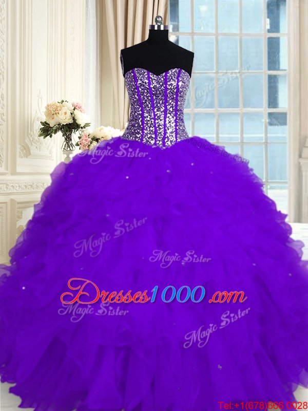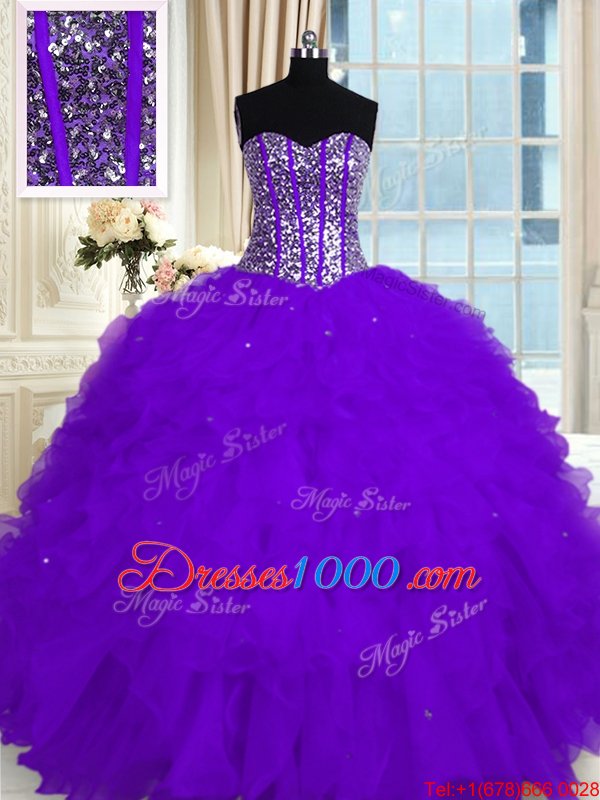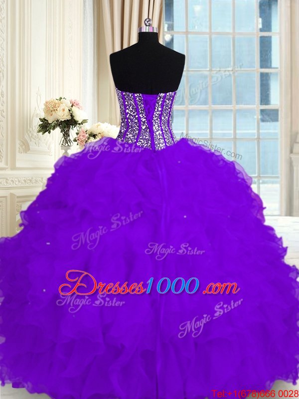 Stylish Sleeveless Lace Up Floor Length Beading and Ruffles Quinceanera Gown