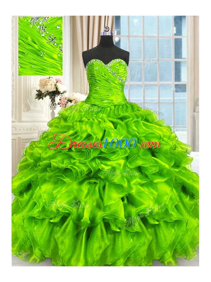 Super Beading and Ruffles and Ruching Quince Ball Gowns Lace Up Sleeveless Floor Length