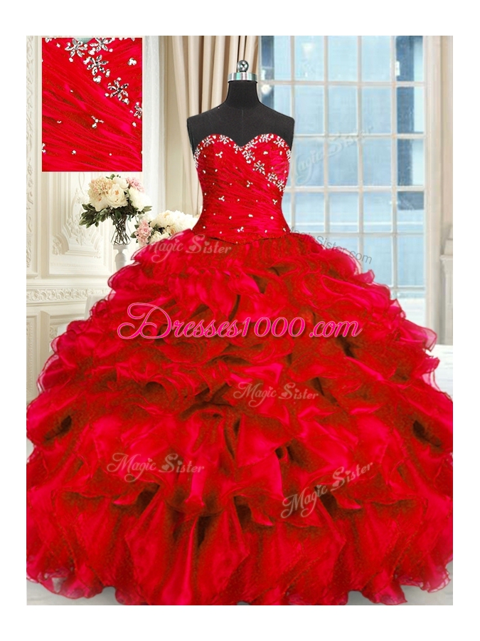 Red Sleeveless Organza Lace Up Quince Ball Gowns for Military Ball and Sweet 16 and Quinceanera