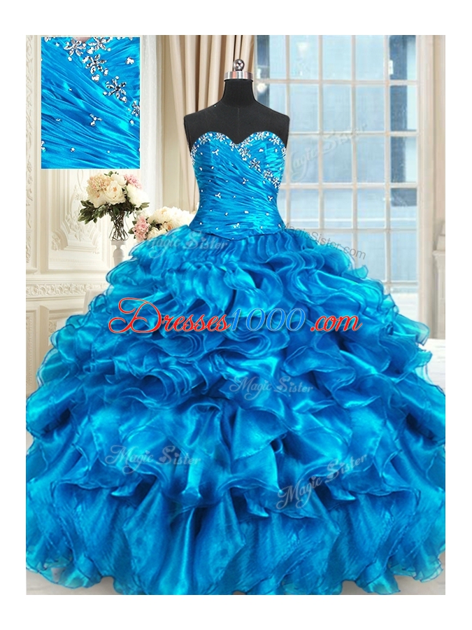 Baby Blue Sweetheart Neckline Beading and Ruffles Quinceanera Gown Sleeveless Lace Up