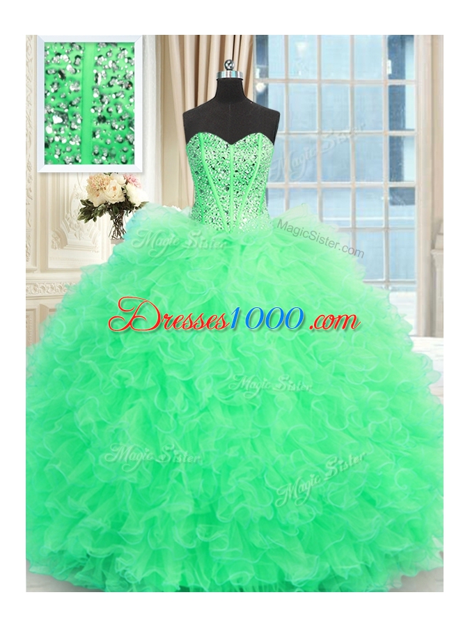 Customized Apple Green Sweet 16 Dresses Military Ball and Sweet 16 and Quinceanera and For with Beading and Ruffles Sweetheart Sleeveless Lace Up