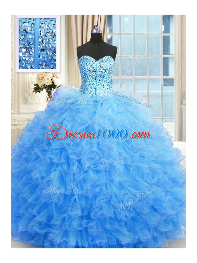 Floor Length Baby Blue Quinceanera Dresses Sweetheart Sleeveless Lace Up