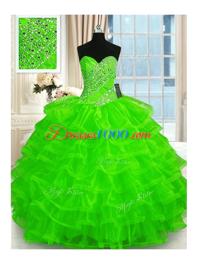 Dramatic Ruffled Ball Gowns Quince Ball Gowns Sweetheart Organza Sleeveless Floor Length Lace Up