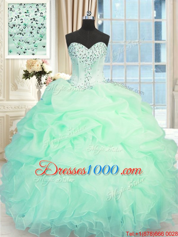 Best Apple Green Lace Up Sweetheart Beading and Ruffles Quinceanera Dress Organza Sleeveless