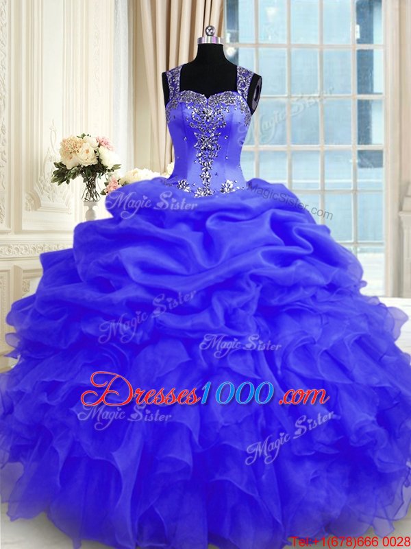 Sophisticated Purple Straps Neckline Beading and Ruffles Vestidos de Quinceanera Sleeveless Zipper