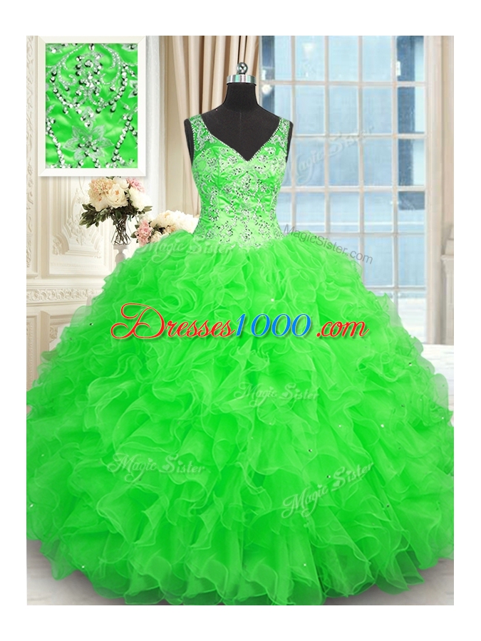 Elegant Green Zipper Quinceanera Dress Beading and Ruffles Sleeveless Floor Length