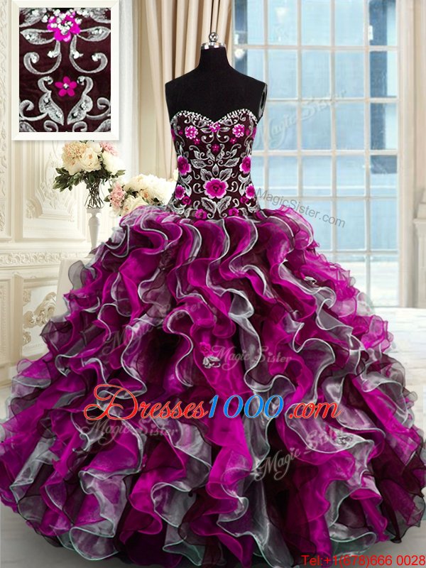 Organza Sleeveless Floor Length Sweet 16 Dress and Beading and Ruffles and Sequins