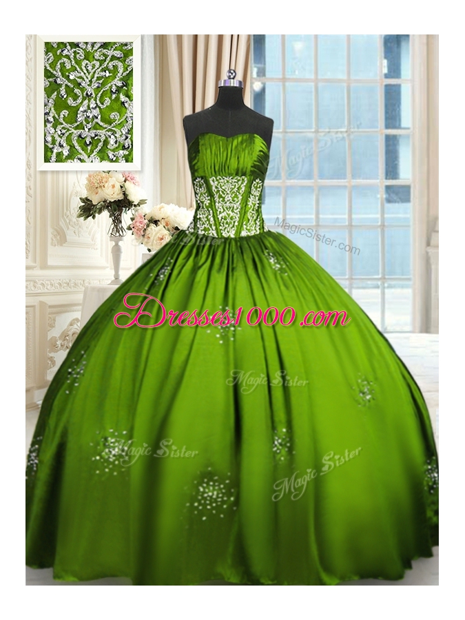 High End Taffeta Strapless Sleeveless Lace Up Beading and Appliques and Ruching 15th Birthday Dress in