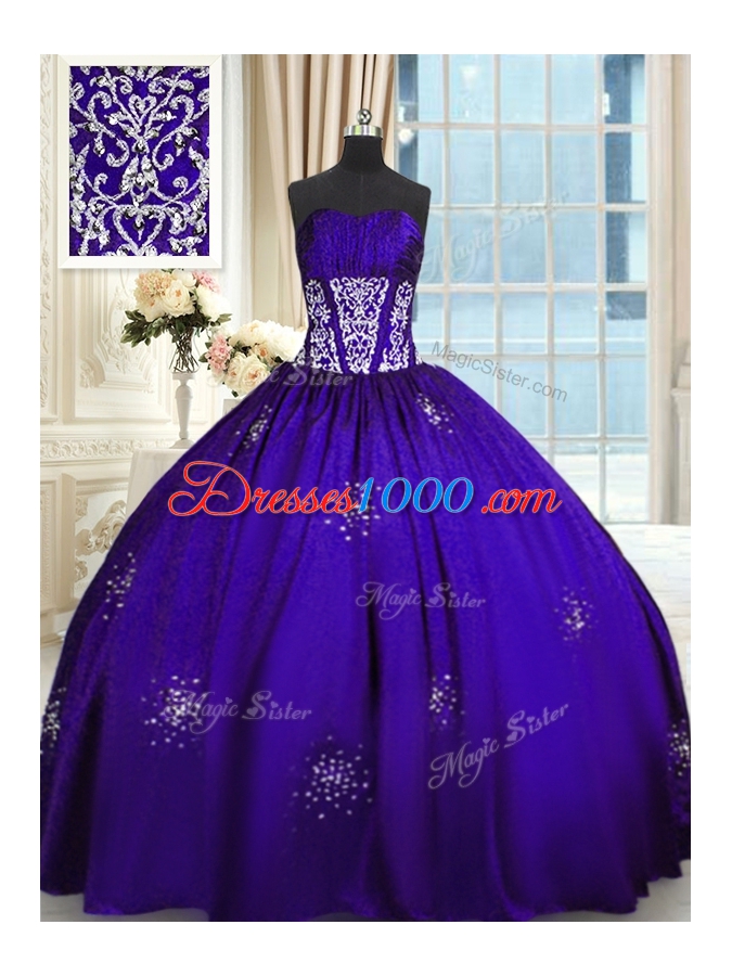 Admirable Purple Lace Up Sweet 16 Dresses Beading and Appliques and Ruching Sleeveless Floor Length