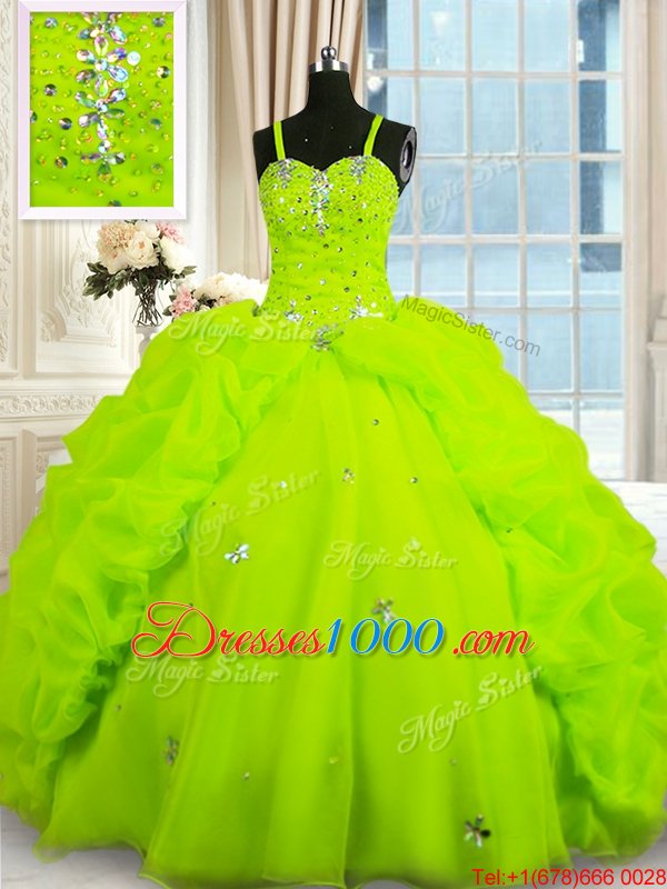Organza Spaghetti Straps Sleeveless Lace Up Beading and Pick Ups Vestidos de Quinceanera in Yellow Green