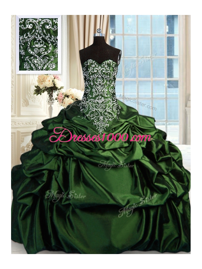 Pick Ups Floor Length Ball Gowns Sleeveless Dark Green Sweet 16 Dresses Zipper