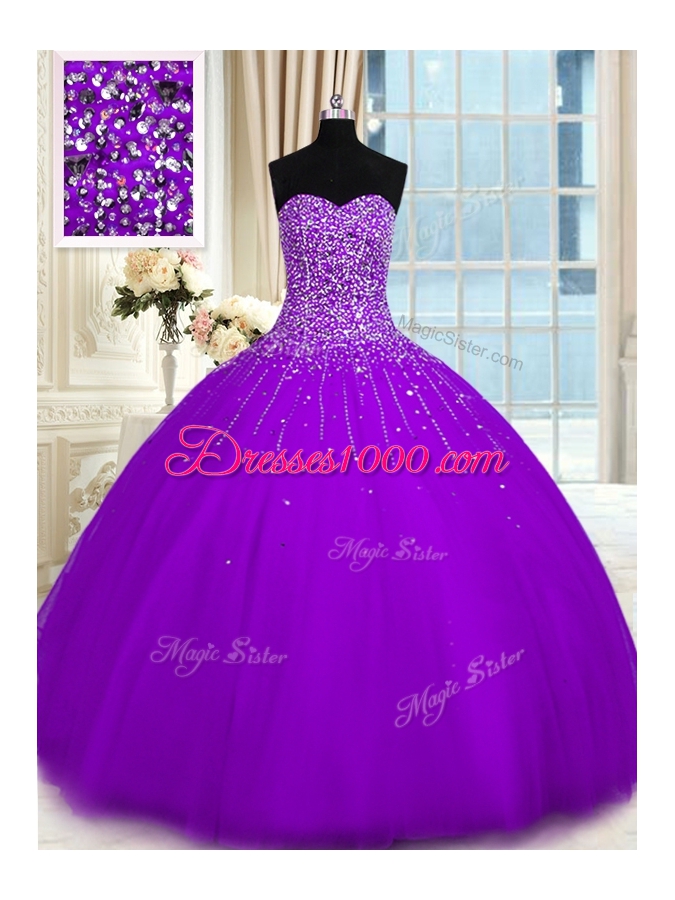Floor Length Purple Quinceanera Gown Tulle Sleeveless Beading