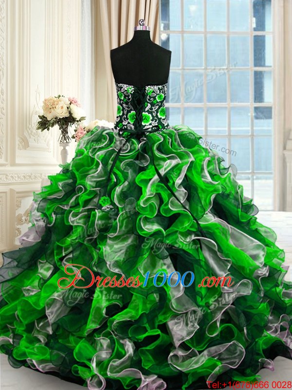 Top Selling Multi-color Sweetheart Lace Up Beading and Ruffles Quinceanera Gown Sleeveless