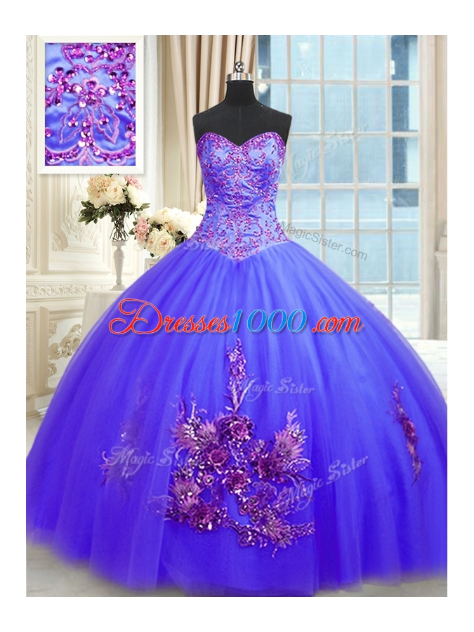 Blue Sweetheart Lace Up Embroidery Sweet 16 Dress Sleeveless