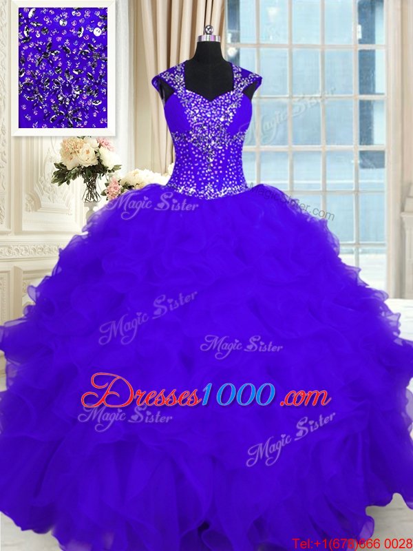 Purple Cap Sleeves Beading and Ruffles Floor Length Quinceanera Dresses