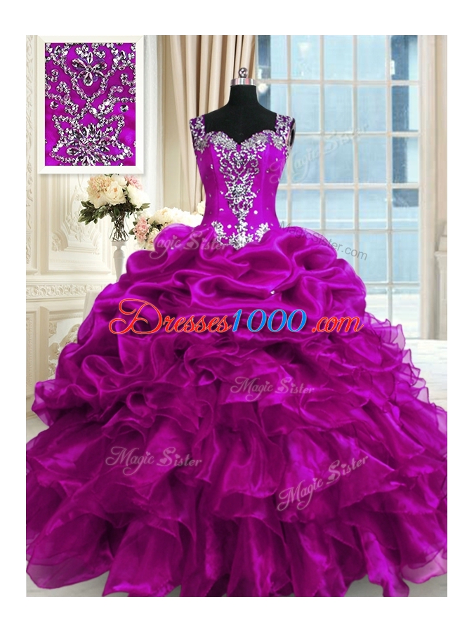Discount Sleeveless Lace Up Floor Length Beading and Ruffles and Pick Ups Sweet 16 Dress