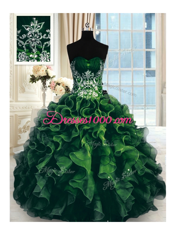 Beauteous Multi-color Ball Gowns Beading and Ruffles Quinceanera Gown Lace Up Organza Sleeveless Floor Length