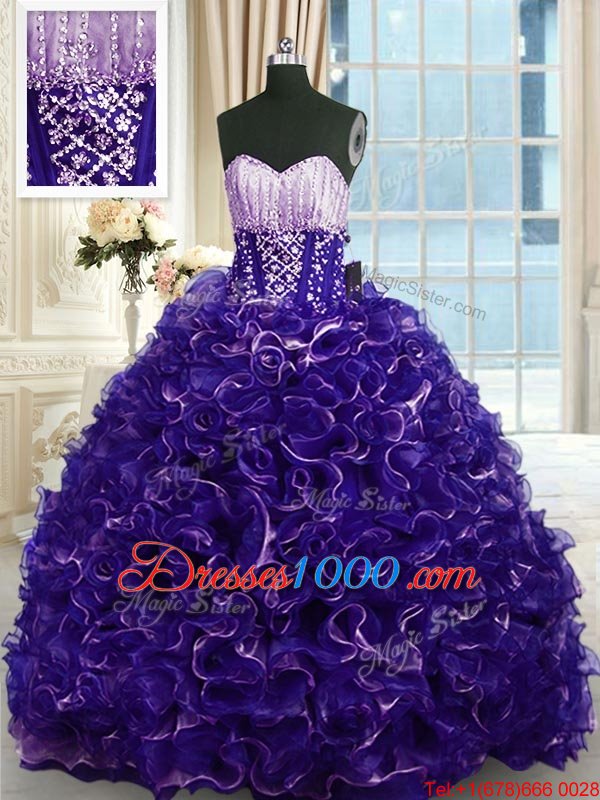 Ball Gowns Sweet 16 Quinceanera Dress Purple Sweetheart Organza Sleeveless Floor Length Lace Up