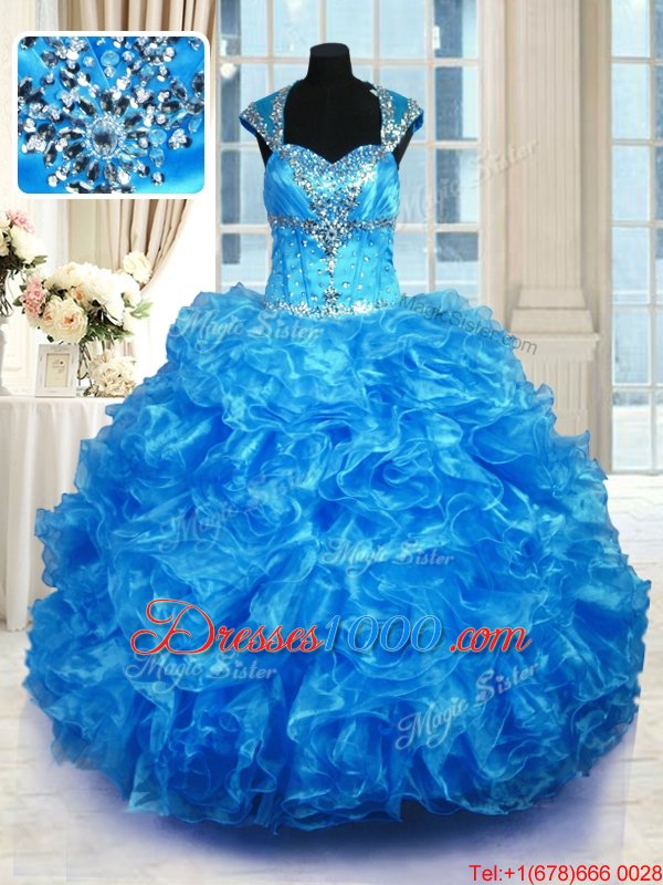 Cap Sleeves Lace Up Floor Length Beading and Ruffles Sweet 16 Dresses