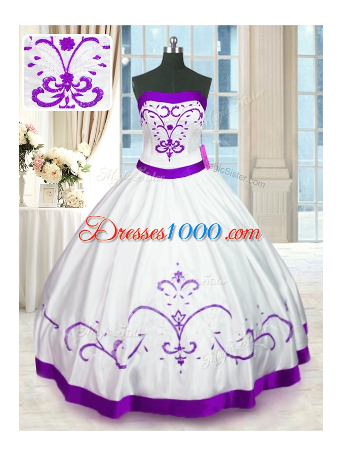 Strapless Sleeveless Lace Up 15th Birthday Dress White Satin