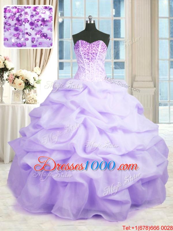 Fantastic Lavender Ball Gowns Sweetheart Sleeveless Organza Floor Length Lace Up Beading and Ruffles 15 Quinceanera Dress